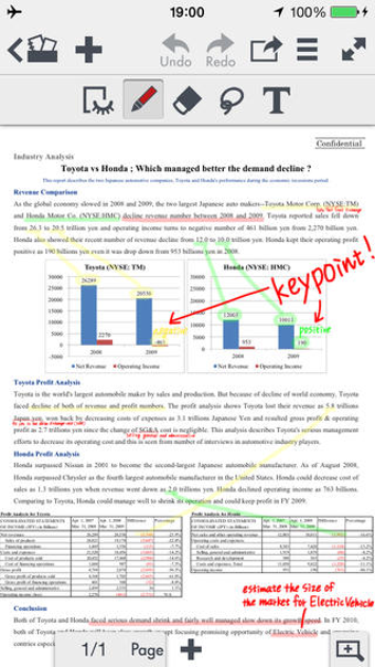 Note Anytimeではさらに、PDFをノートの背景として読み込み、上からコメントや図を手書きで書き込むことが可能なので、プレゼン資料を読み込んで自分なりのメモを上書きするといった使い方もできます。作成した文書はPDFや画像に変換してメールで送信できるほか、Airprint対応プリンタから直接印刷も可能です。このアプリはAndroid版とWindows8/RT版があり、互換性があるので、iPhoneで作成した文書をWindows8のPC上で編集し、iPadを使ってプレゼンテーションする、といった使い方もできます。